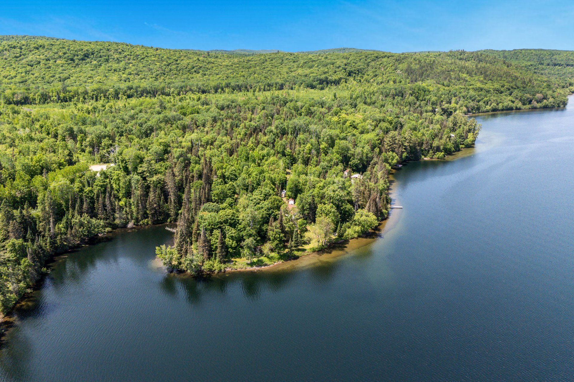 This is a rare opportunity to seize a true gem nestled on the turquoise shores of the majestic Lac Cayamant. With over 650 feet of sandy shoreline, a private bay, and breathtaking panoramic views, this property offers unmatched privacy on a 3.3-acre lot. The main cottage is ready to welcome your memories, featuring 2 bedrooms and a guest house, beautiful view on the lake + spacious living room with a pool table, while a second cottage, awaiting rebuild, offers incredible potential: two cottages on the same lot -- ideal for hosting family and friends or creating a revenue-generating opportunity. An exceptional site -- don't miss out!